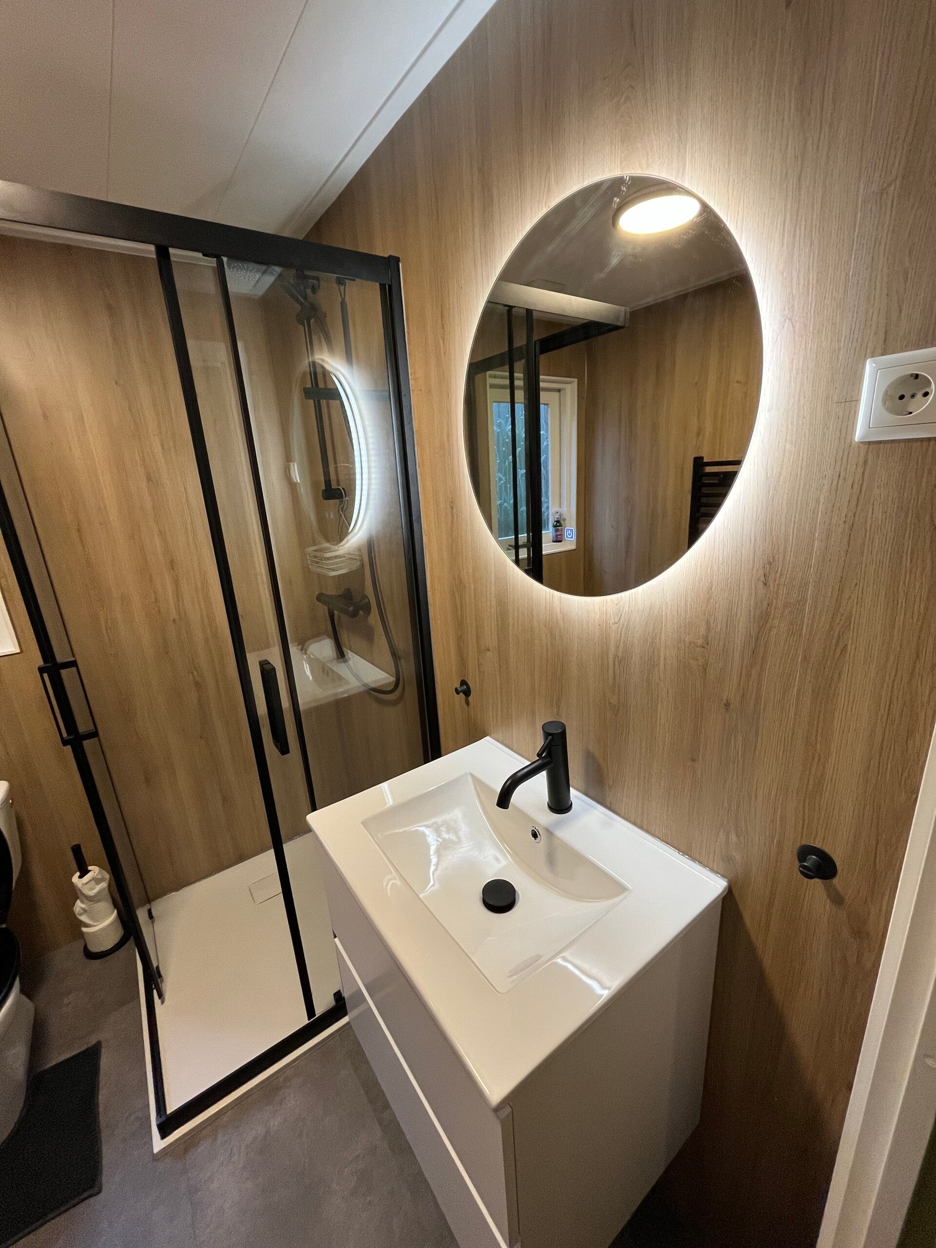 Badkamer: De badkamer is geheel compleet met een wastafel, wc en praktische douche.