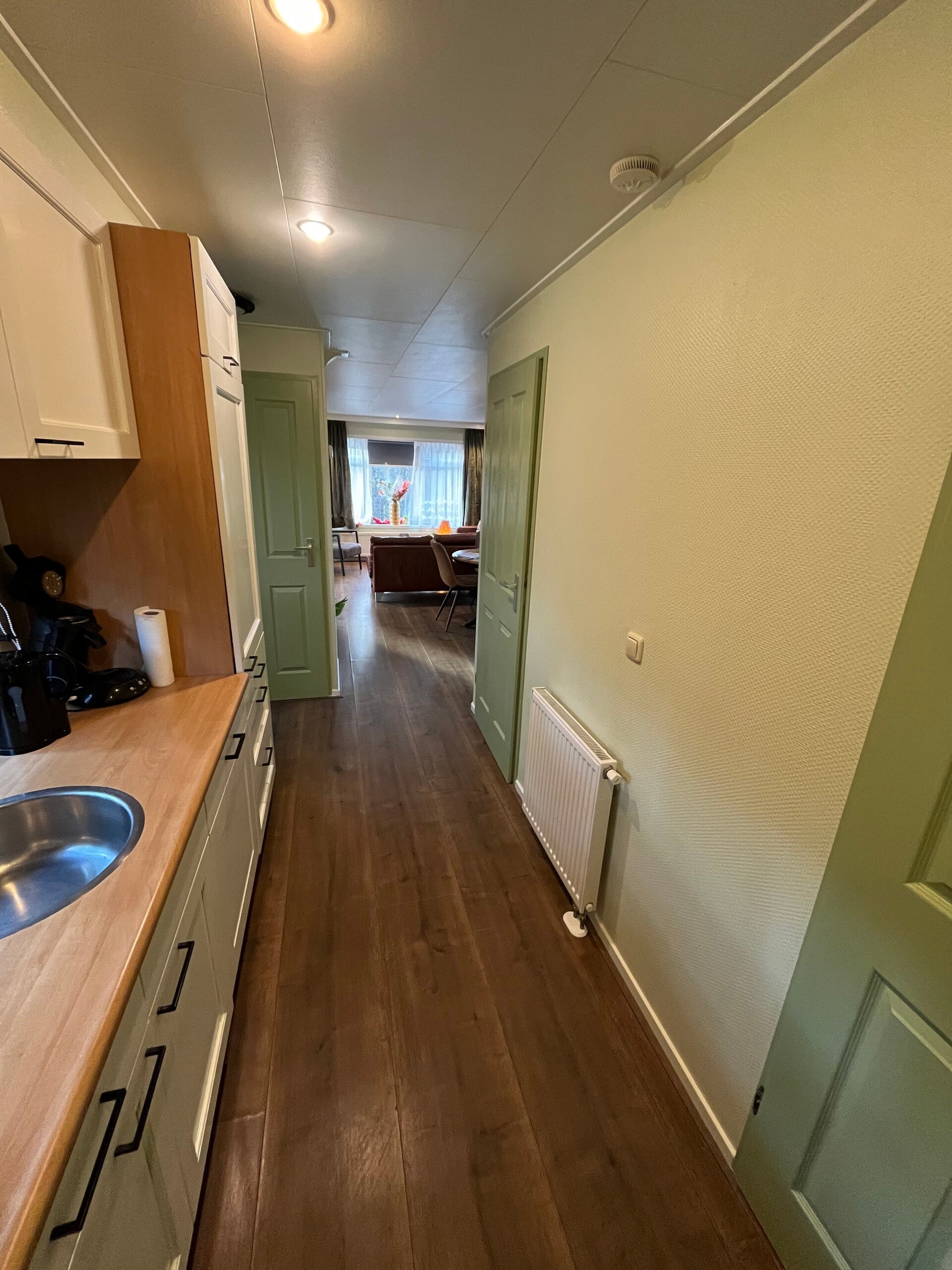 Keuken: Ruime open keuken met onder andere een oven/magnetron, vaatwasser, Senseo, gewoon koffiezetapparaat en waterkoker.